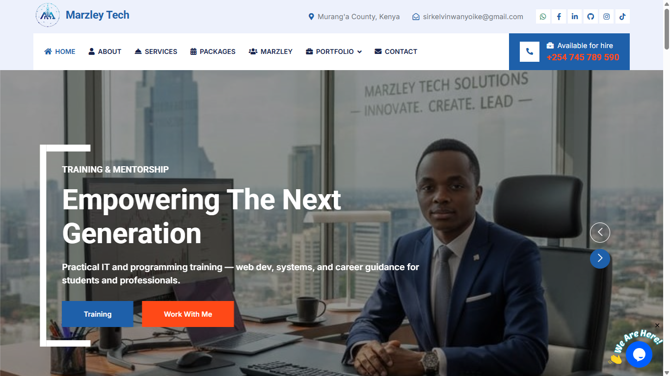 Training Work With Mealso known in the tech space as Marzley — a passionate web developer, designer, and IT professional based in Murang'a County, Kenya. I’m the founder of Marzley Tech Solutions, focused on turning ideas into reality through web and app solutions.